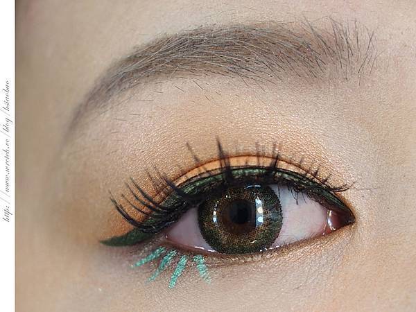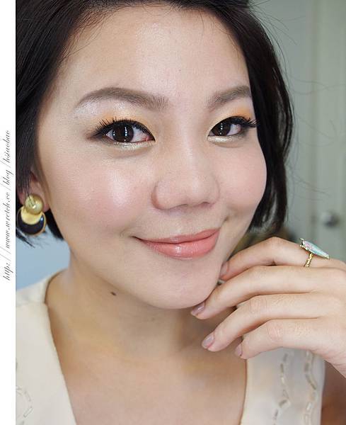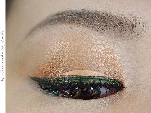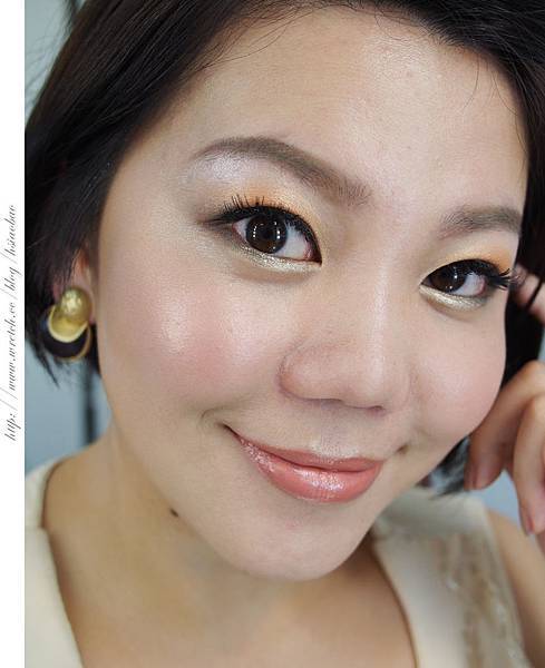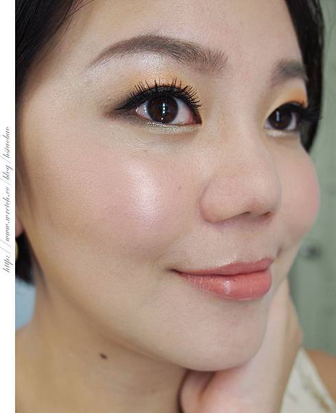 眼妝表現方式,我以橘色為主要色調,大面積刷在眼皮(溼擦) ,