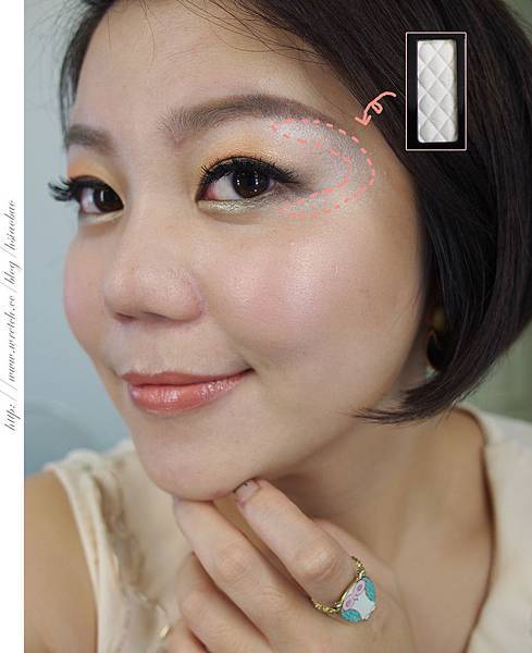 珍珠白色這格拿來打亮眉骨與眼周C字部位的提亮效果很好唷!