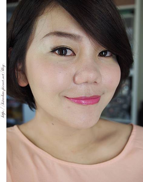 再擦上桃紅唇後,不需要飾品的點綴也能有亮點