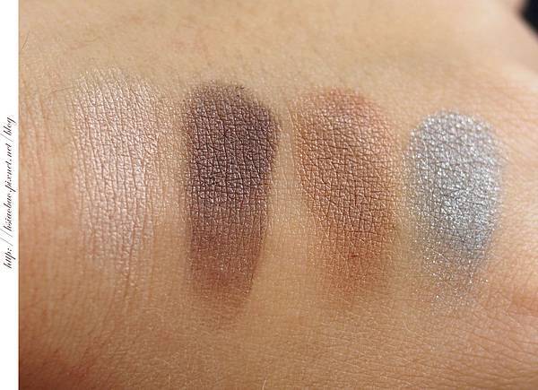 以往四色眼彩盤的亮片稍微明顯些,所以濕擦後的金屬光澤表現也比較強烈