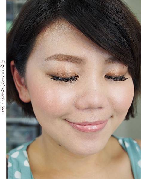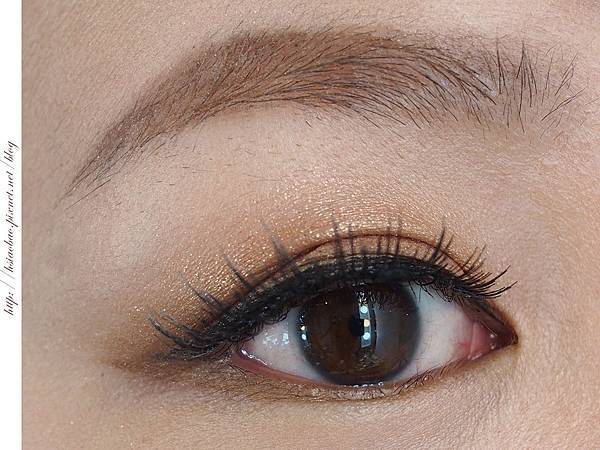 所以配上暖金色眼影粉後,看起來的妝感還是很清爽不會太過沈重