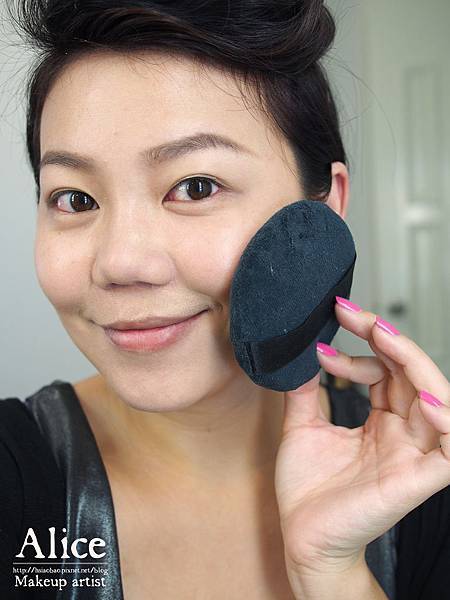 接著拍上些許蜜粉讓底妝維持長時間的亮度