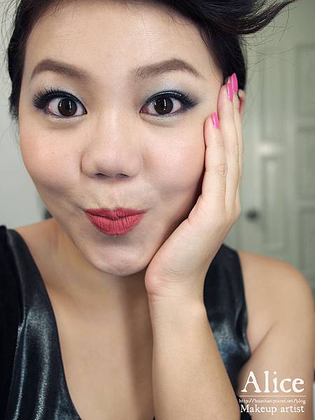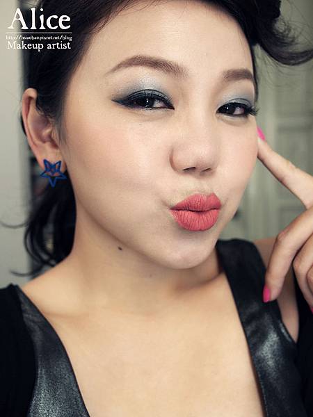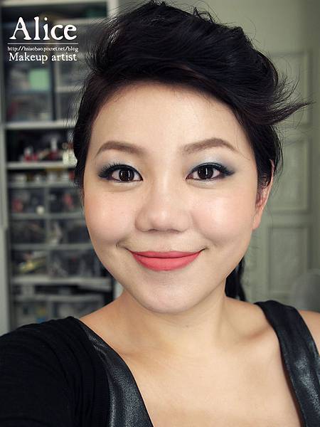 我再加入拉長的寶藍色眼線,眼神電加倍奉上!哈