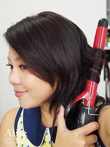 稍微等髮尾乾了之後再繼續使用電棒捲加熱