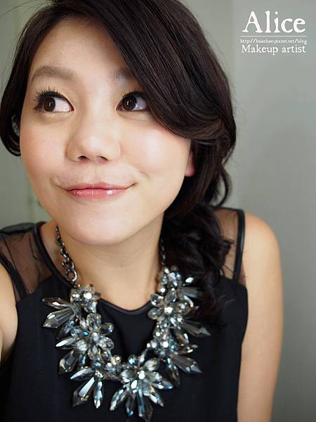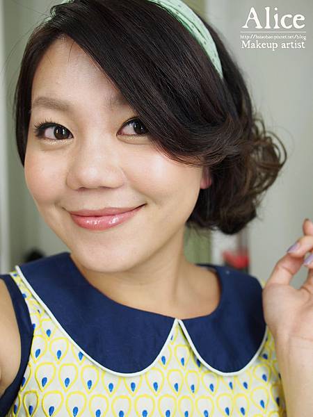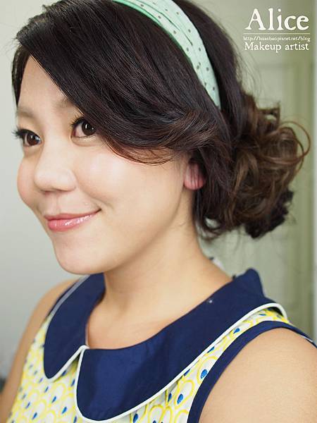 因為洋裝夠搶眼了,所以我選擇使用淺綠色的髮箍作為裝飾