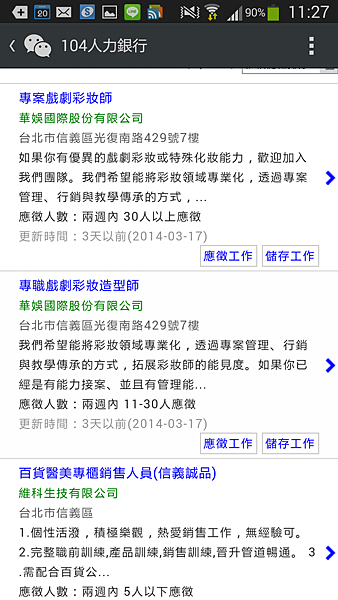 接著104銀行會秀出依照我的關鍵字而搜尋到的工作結果