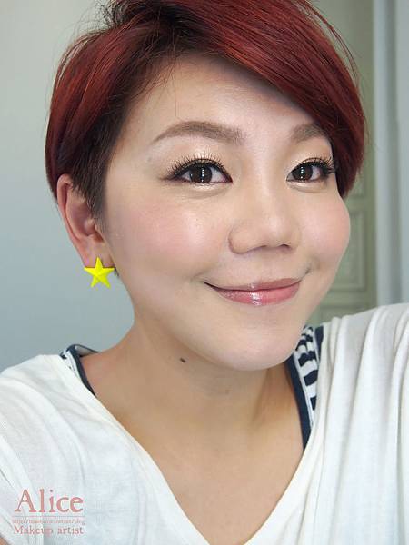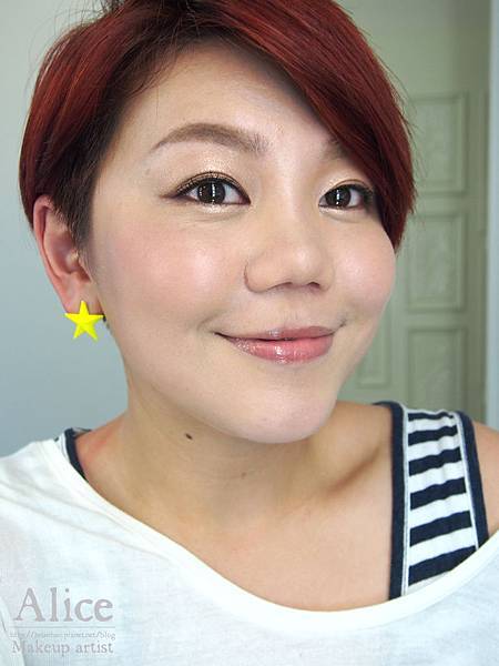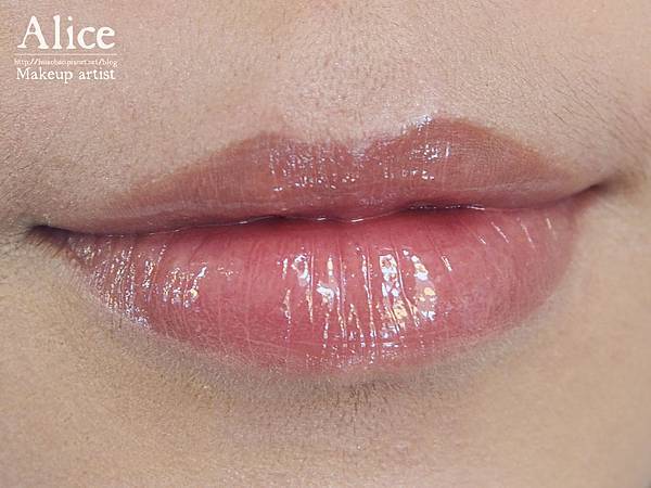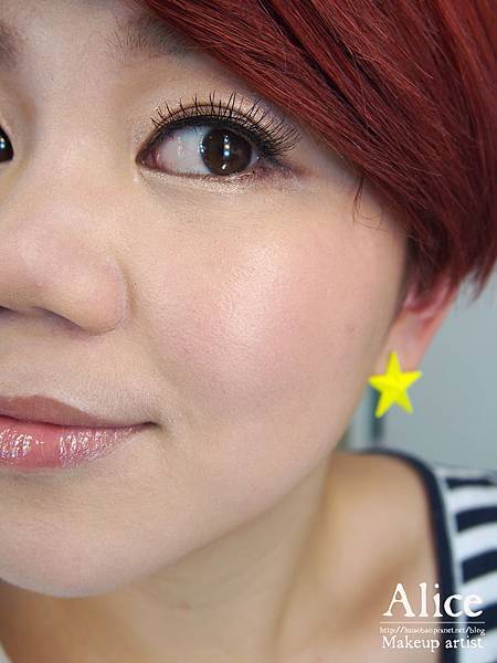 帶有光澤的晶亮色+自然膚色,混合後刷上