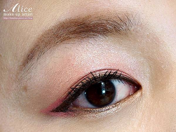 6.CLIO粉紅色眼線筆畫在眼尾,勾出可愛的小尖尾