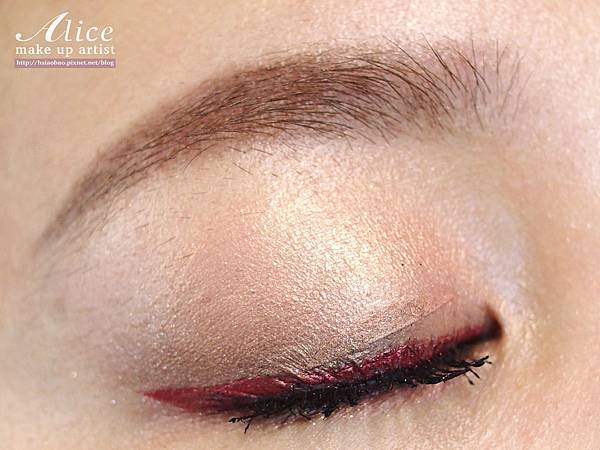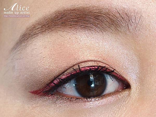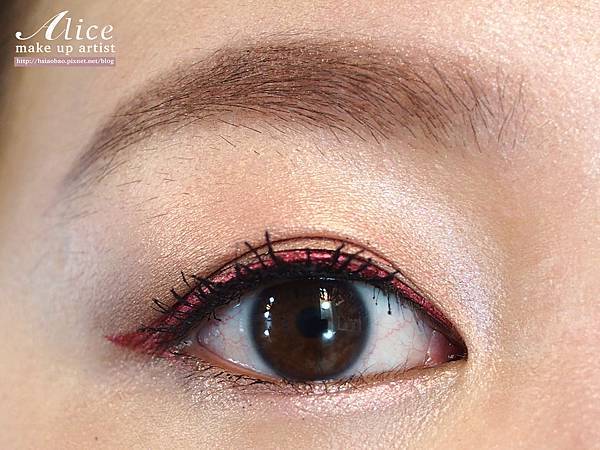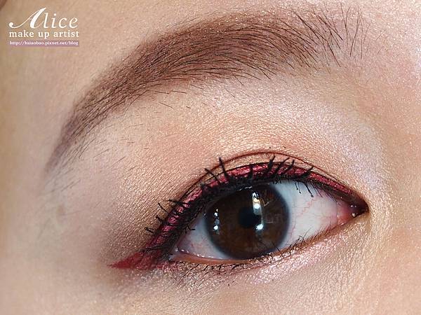 使用戀愛魔鏡新出的紅色眼線液框出眼線