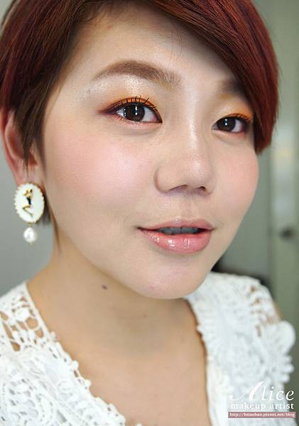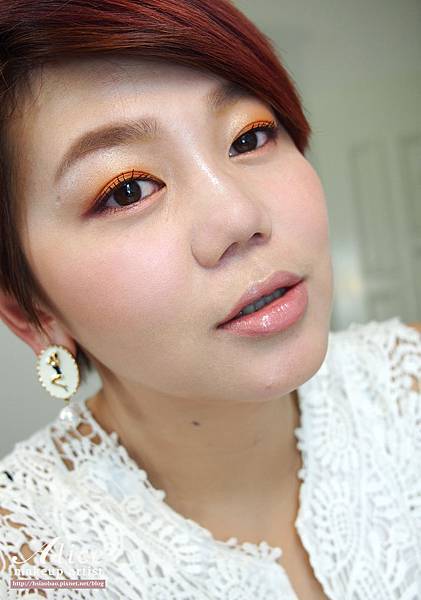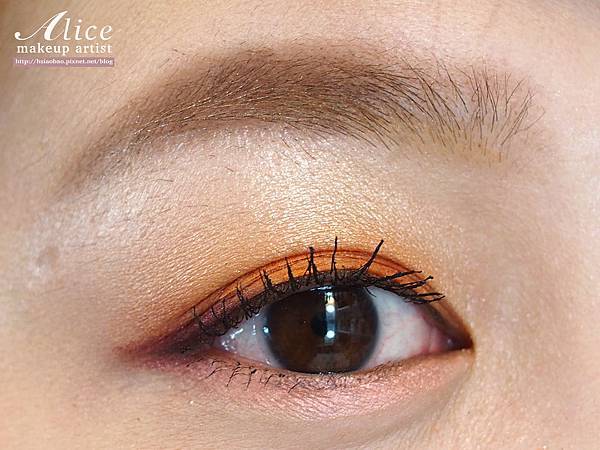 另外嘗試了把眼影中的珊瑚粉與深咖啡色做個搭配,