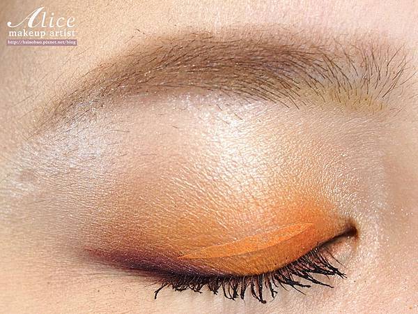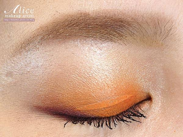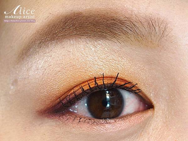2.霧面橘色由下往上暈染,越接近睫毛根部顏色越飽和