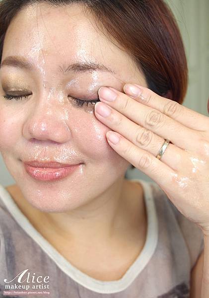 卸妝真的很快,擠完四下按摩之後加水乳化,然後用水沖掉就好了~