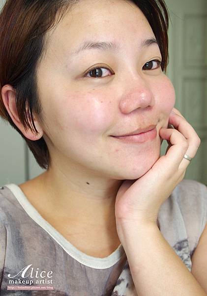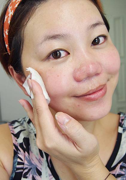 習慣用化妝棉沾濕後擦上,然後再輕輕拍打全臉~