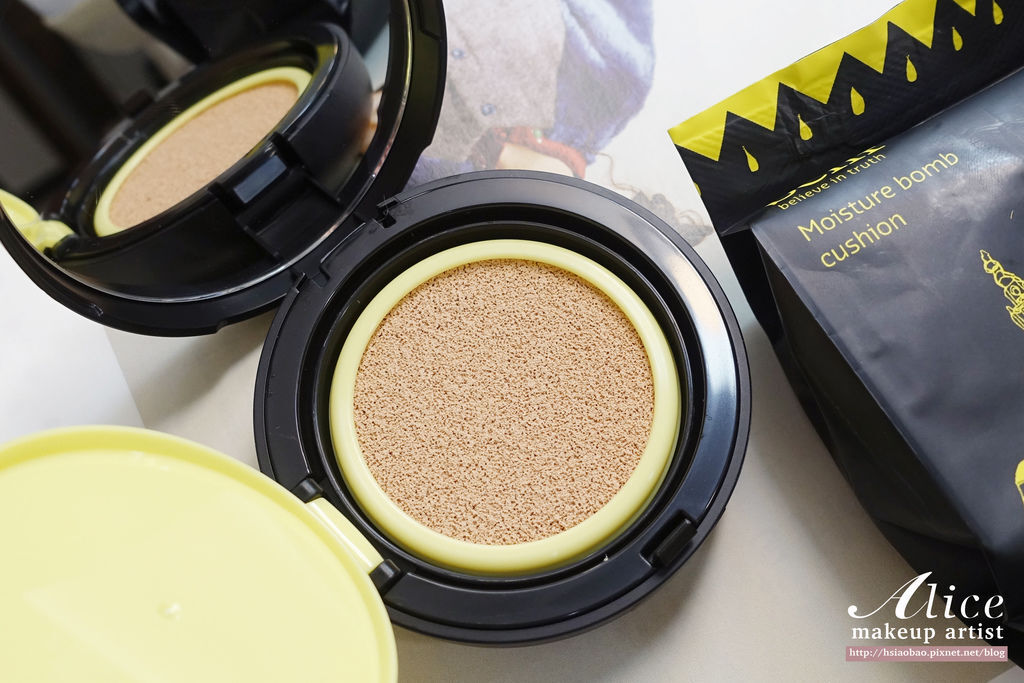 藉由慕斯水炸彈氣墊粉底中的紫草葉萃取,防止肌膚問題還有收斂肌膚作用