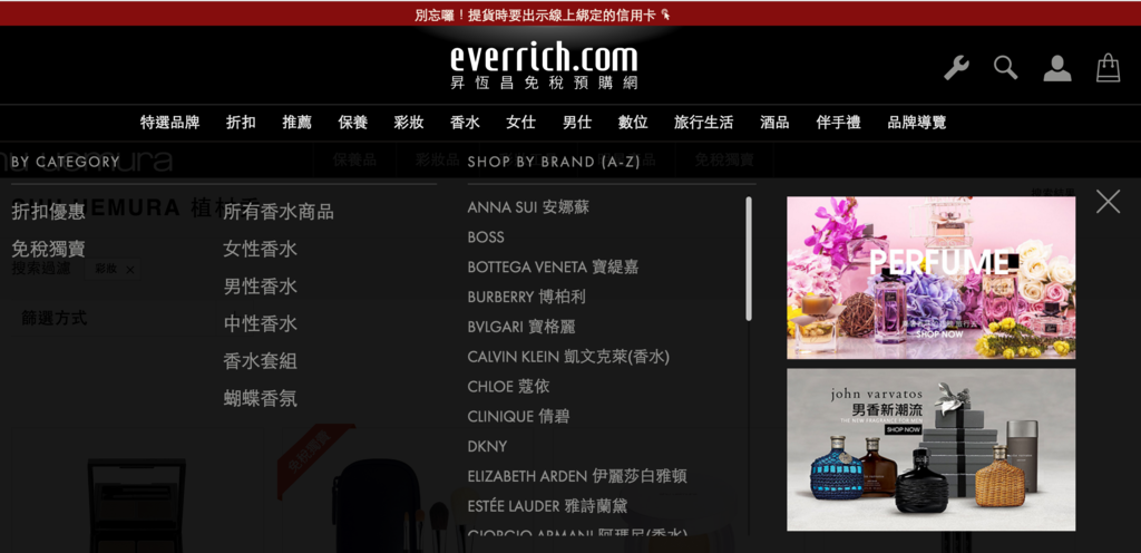 SHOP PERFECT 的位置就在網頁右上角購物袋點下去就能找到囉!