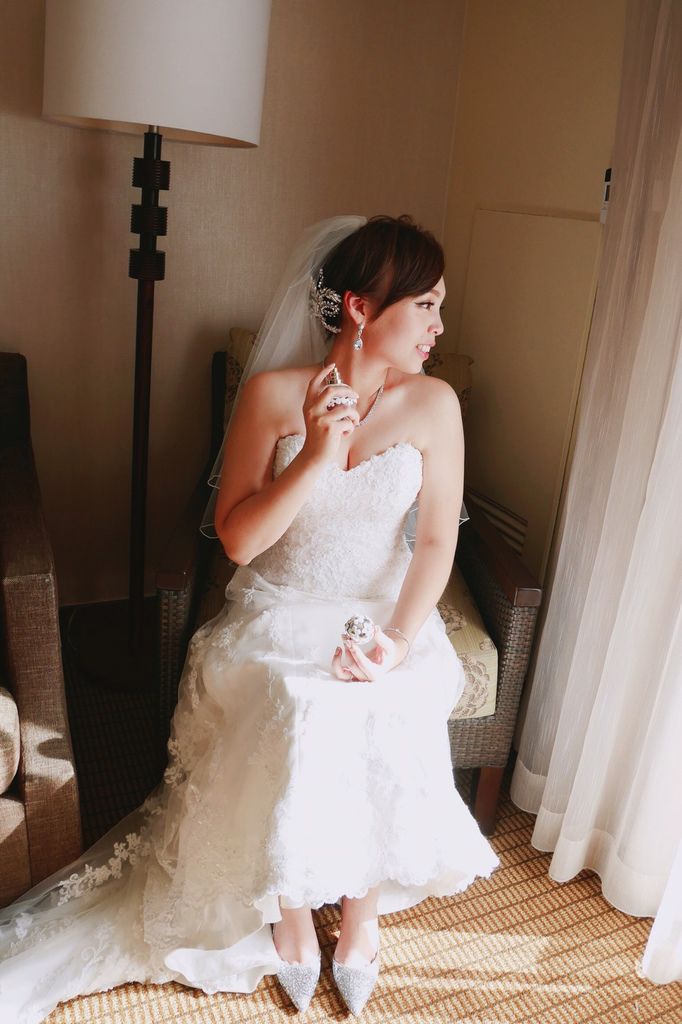 梳化當天剛好把免稅店買到的MJ雛菊香水當成小道具讓新娘兒拍照用
