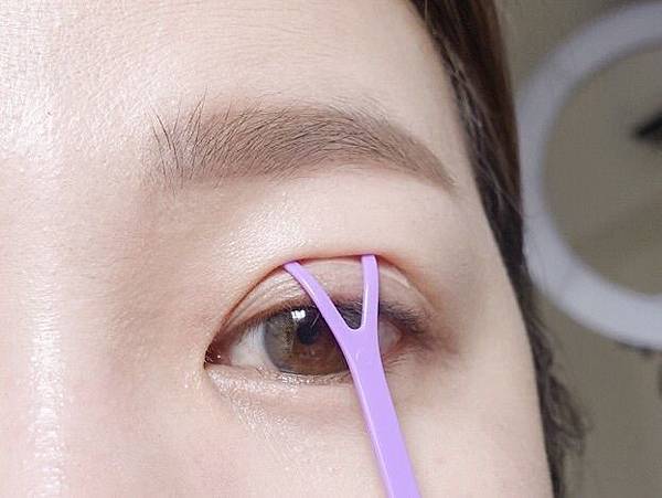 再用Y字棒將這個折痕進去 讓上下眼皮稍微黏一點點起來