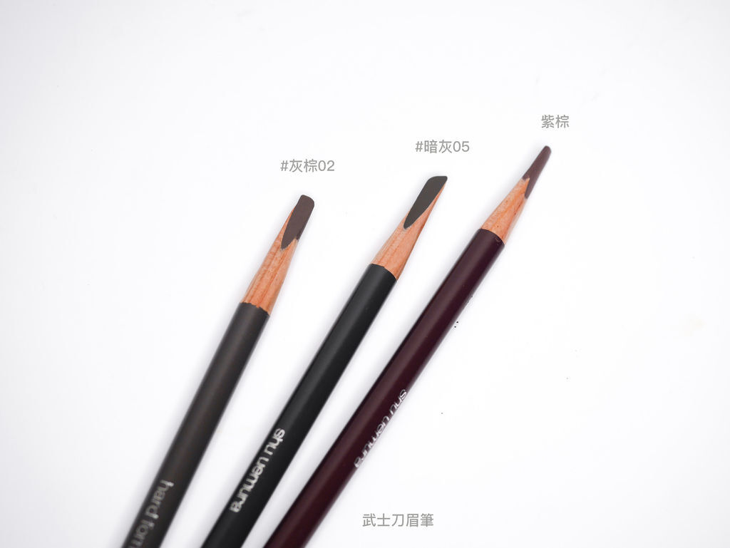 武士刀眉筆的筆芯比較硬,非常好描繪眉型線條的俐落感,勾勒眉尾弧度順順的就能畫出來