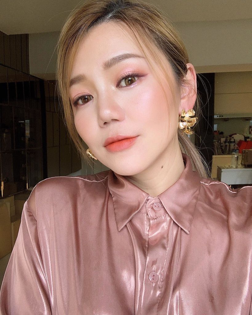 下眼影疊紫色珠光,配合我的粉紅緞面襯衫,整個眼妝都要發光才行💡💡💡