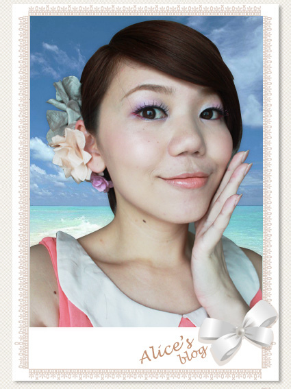 在髮際側邊加上三色花花飾品,配合眼妝的粉嫩色彩,超搭的呀!!!