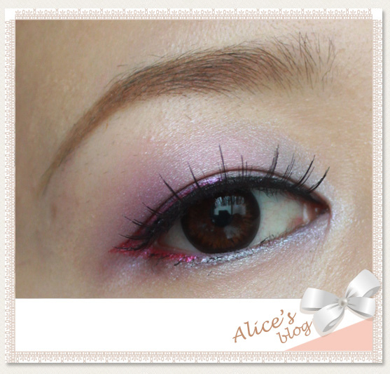 加上鮮豔桃紅色眼線液妝點一下!!