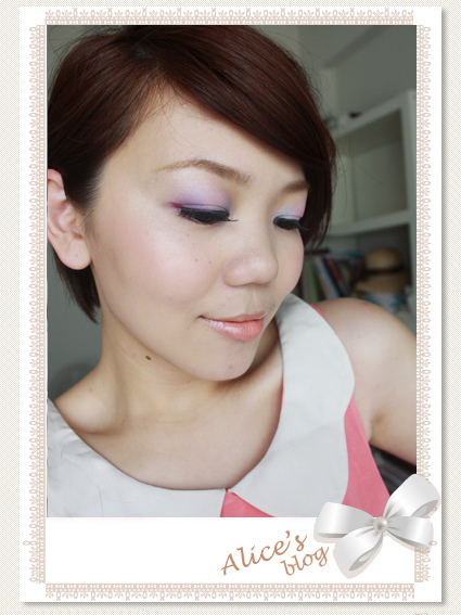 眼妝全都是粉粉紫紫,看起來沒什麼重點