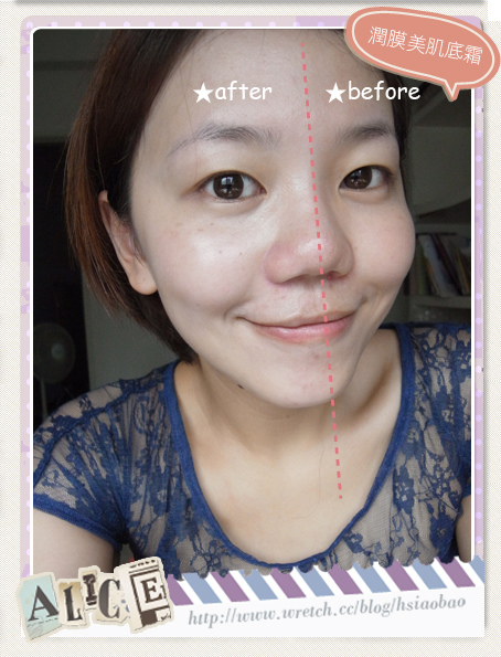 原本偏黃偏暗的膚色,再擦上後力即出現珍珠光澤般的透亮