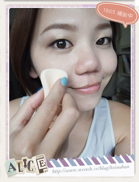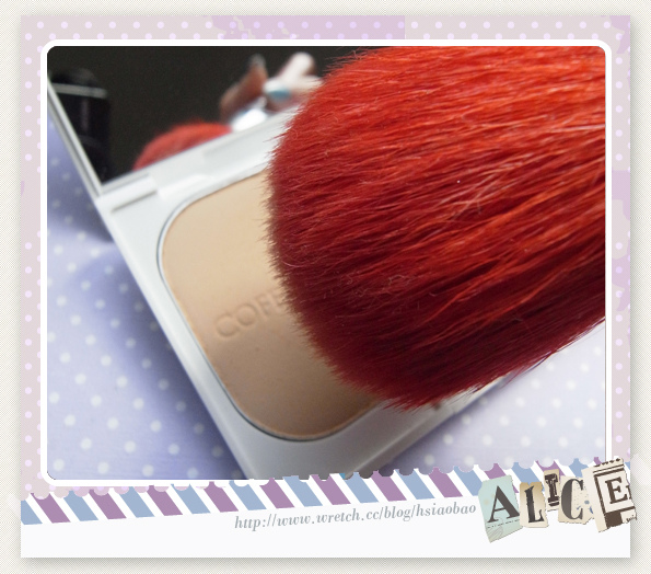 這次上粉霜後,使用蜜粉刷輕輕沾取一些粉餅,拿來當蜜粉使用