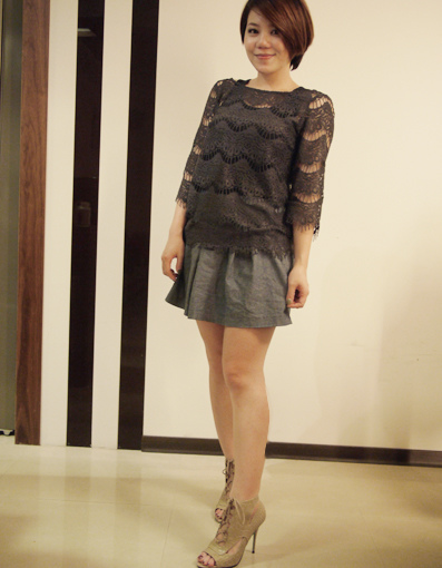 我這天穿的是近期超愛的ZARA蕾絲上衣配上淺單寧色褲裙